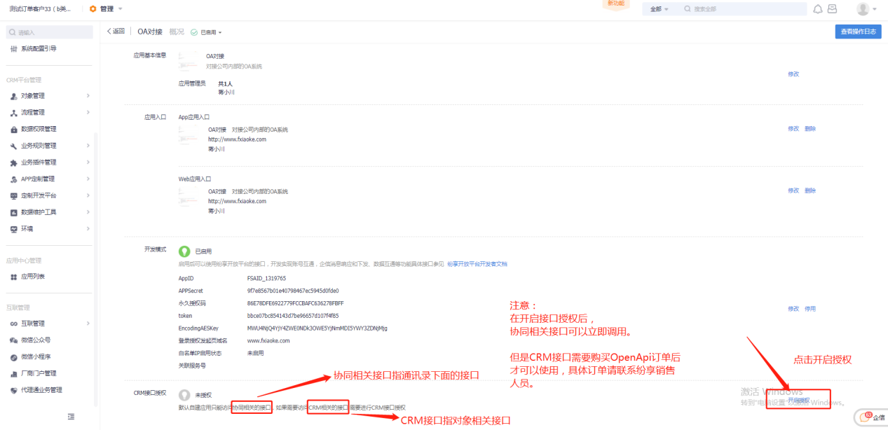 1) 注册成功后登录到纷享销客网页版,进入应用管理页面,如下图: